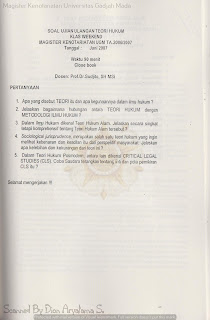 Dibawah ini terdapat beberapa soal terkait tentang kuliah Program Pascasarjana Magister Kenotariatan yang diperoleh dari soal ujian dan telah dibukukan sebagai Gudang Soal yang diterbitkan oleh Keluarga Mahasiswa Notariat Universitas Gadjah Mada.